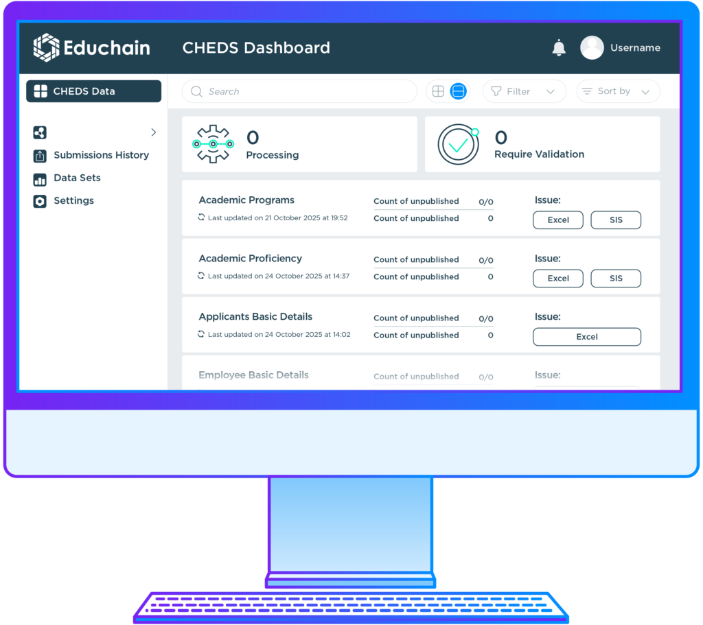 The Educhain CHEDS Master API Dashboard streamlines data submission, ensuring a secure, efficient, and compliant process.